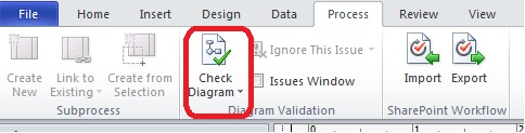 now the user can check the Digram validity, by clicking  on the Check Diagram in the process tab of Visio ribbon options.