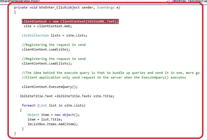 above is the code for button click to submit the Site URL, as it can be noticed that it correspond to the Server, only when it execute the ClientContext.ExecuteQuery();