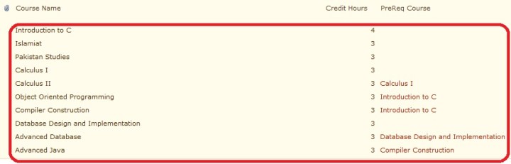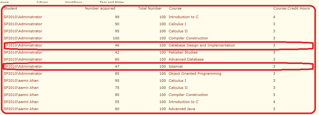 i have two list, BSSE 2003 and BSSE Course. BSSE Course have the over all course in the BSSE, while the BSSE 2003 shows the class having the student acquiring marks against those subject.