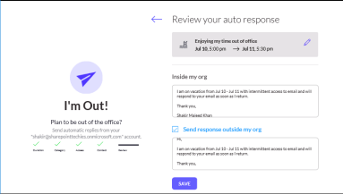 so, now you can see auto generated email body with all of your chosen options, you can choose different email body if email received from inside/outside organization
