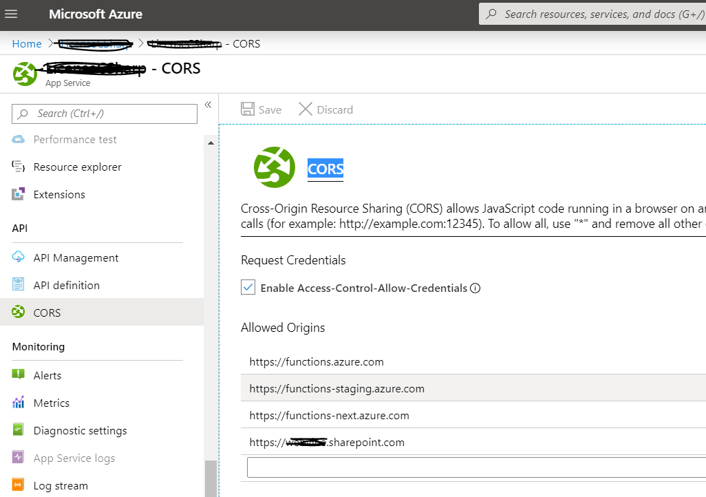 You can skip the above setting, you can setup the request with the following settings, Following is the example to enable CORS from the NodeJS Azure Functions