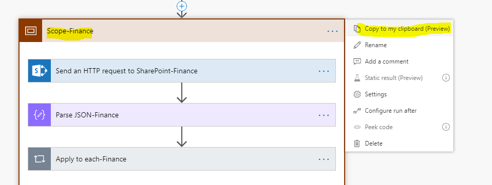 A Quick tip, if you want to move some of action from one Flow to another, Simply click on the source action (…) and click on the “Copy to my clipboard (Preview)”.
