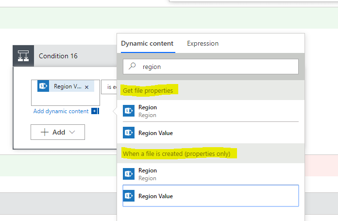 So to get the respective field value of the document uploaded, you can use the “Get File Properties” action. This will bring the relevant value